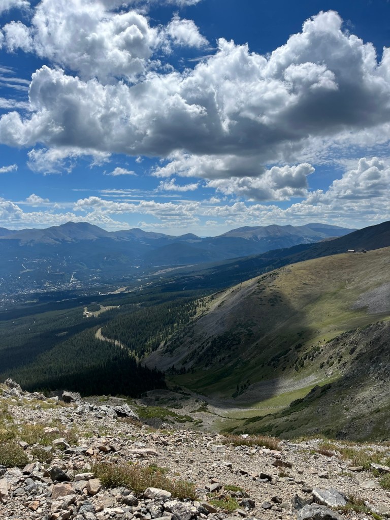 There are 2 routes you can take from Twin Lakes: Collegiate East or Collegiate West. They both loop back into the common trail but Collegiate East is a tad shorter and is not as difficult and not quite as exposed. Collegiate West is a bit longer, more challenging because of the exposure, but has the better views and scenery. Most people wait until they get to the fork off point to decide the route based on the weather predictions. I chose Collegiate West and the scenery did not disappoint!!!
