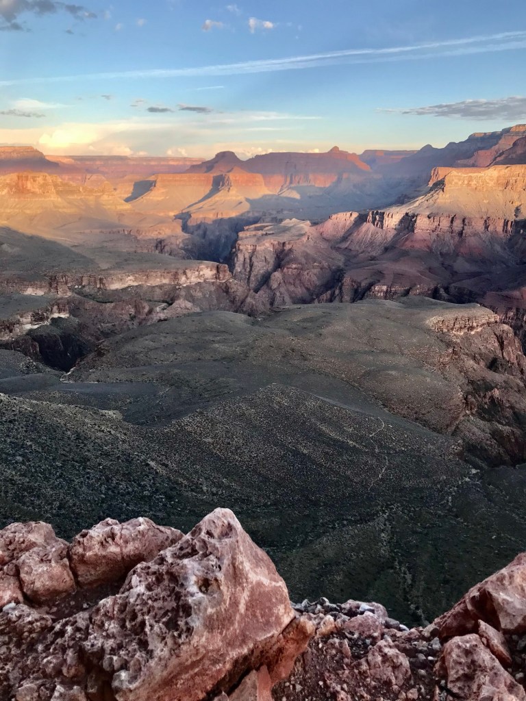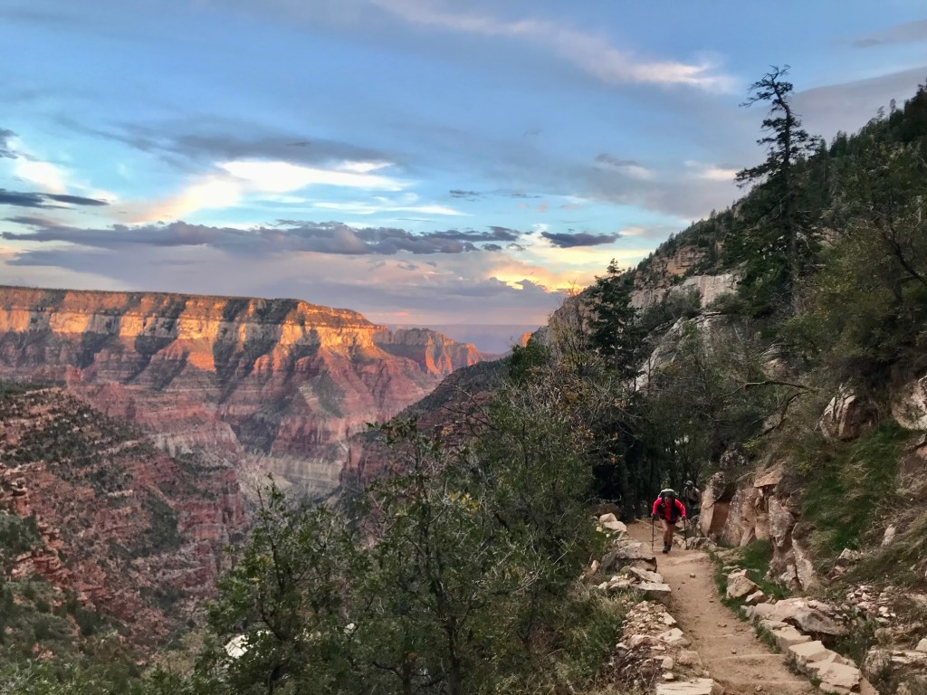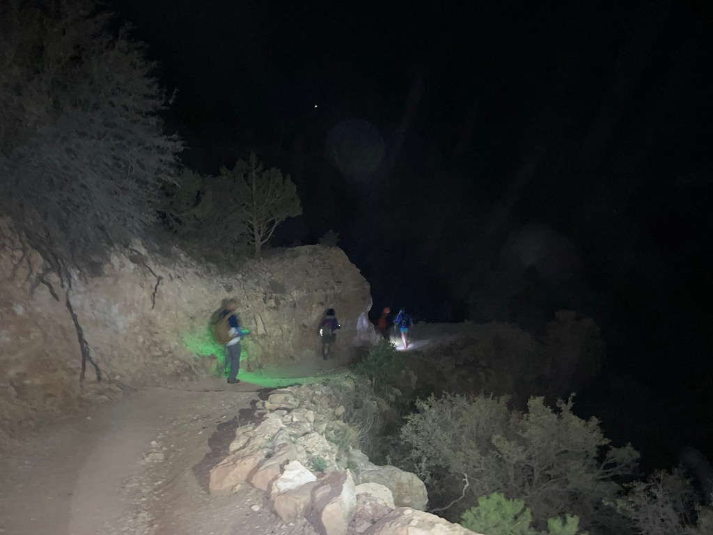 We started in the dark with headlamps around 4:30 am and popped out on the north rim around 6pm. We had spent a little time in the river and having snacks at Phantom Ranch. After arriving at the North Rim, we hitched a ride in the back of a truck to the North Rim Lodge where we got to have a delicious dinner. We were all starving. **Sad to say that the lodge burned down this year when lightning started the Dragon Bravo fire that burned over 145,000 acres. I’m so happy I got to see and enjoy the lodge before its demise.