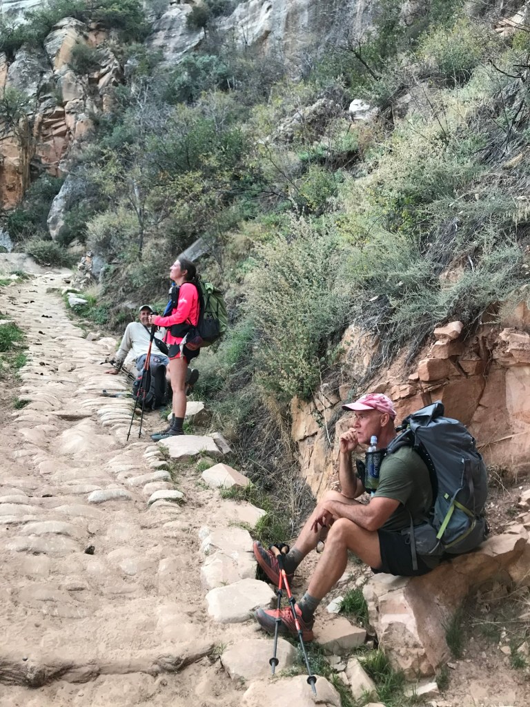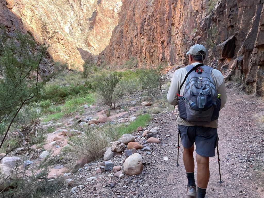 You could sign up at the lodge the night before for a shuttle to take you back to the trailhead the next morning but there were limited spots each hour. There were two 4:30 am spots so Tex and I took those and the others came about an hour behind us. We hiked down and relaxed in the river and waited for them there. We arrived back at the south rim around 7:15 that evening. We had done approximately 48 miles down and up and back down and up again in 2 days.