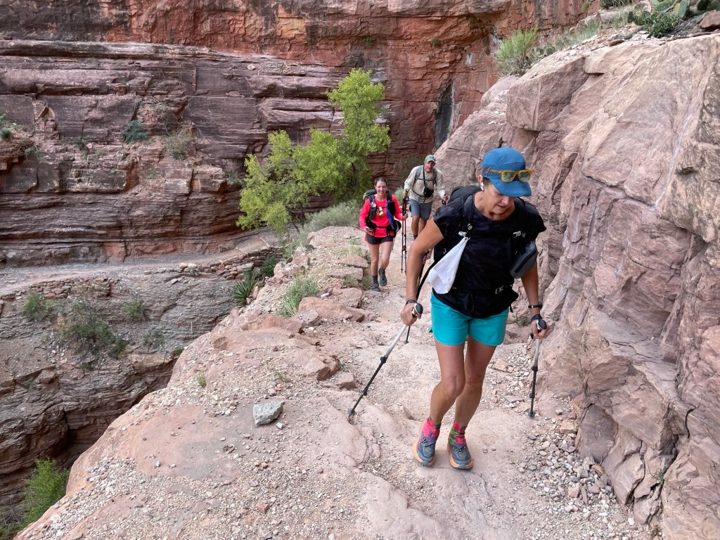 To say this was a challenge would be an understatement. The temperature at the top of the rim was cold and at the bottom it was 100 degrees. It can vary 20-25 degrees between the top and bottom because of the elevation difference. The heat made it tough. Luckily, souzing down in the Colorado River for a while helped to cool us down a bit where we could continue on and make the climb out.