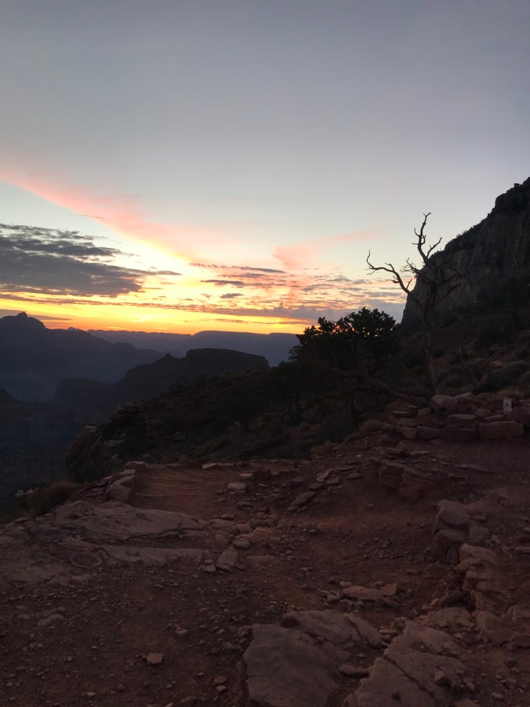 Yep. You read that right! If you know, you know! This refers to hiking the Grand Canyon from one rim to the other and back again. It is 24 miles one way. You descend 6,000 feet from the south rim via the South Kaibab trail to the bottom of the canyon where you reach the Colorado River and ascend 4,500 feet to the north rim via North Kaibab trail. Then, to return you descend the 4,500 feet down North Kaibab and can either ascend back up South Kaibab or the Bright Angel Trail which is longer in distance but not quite as steep up. This is what we did to get a different view on the return.