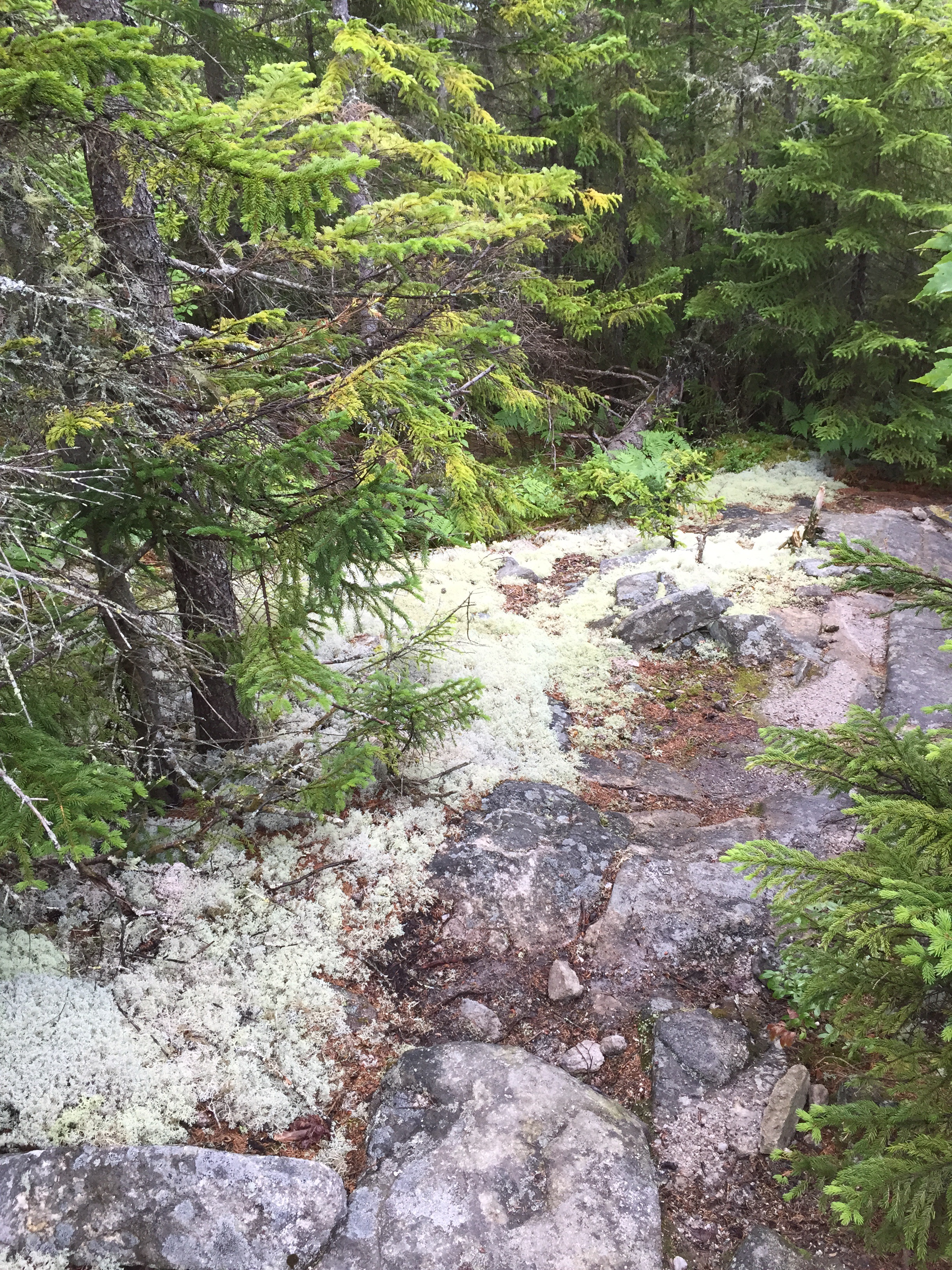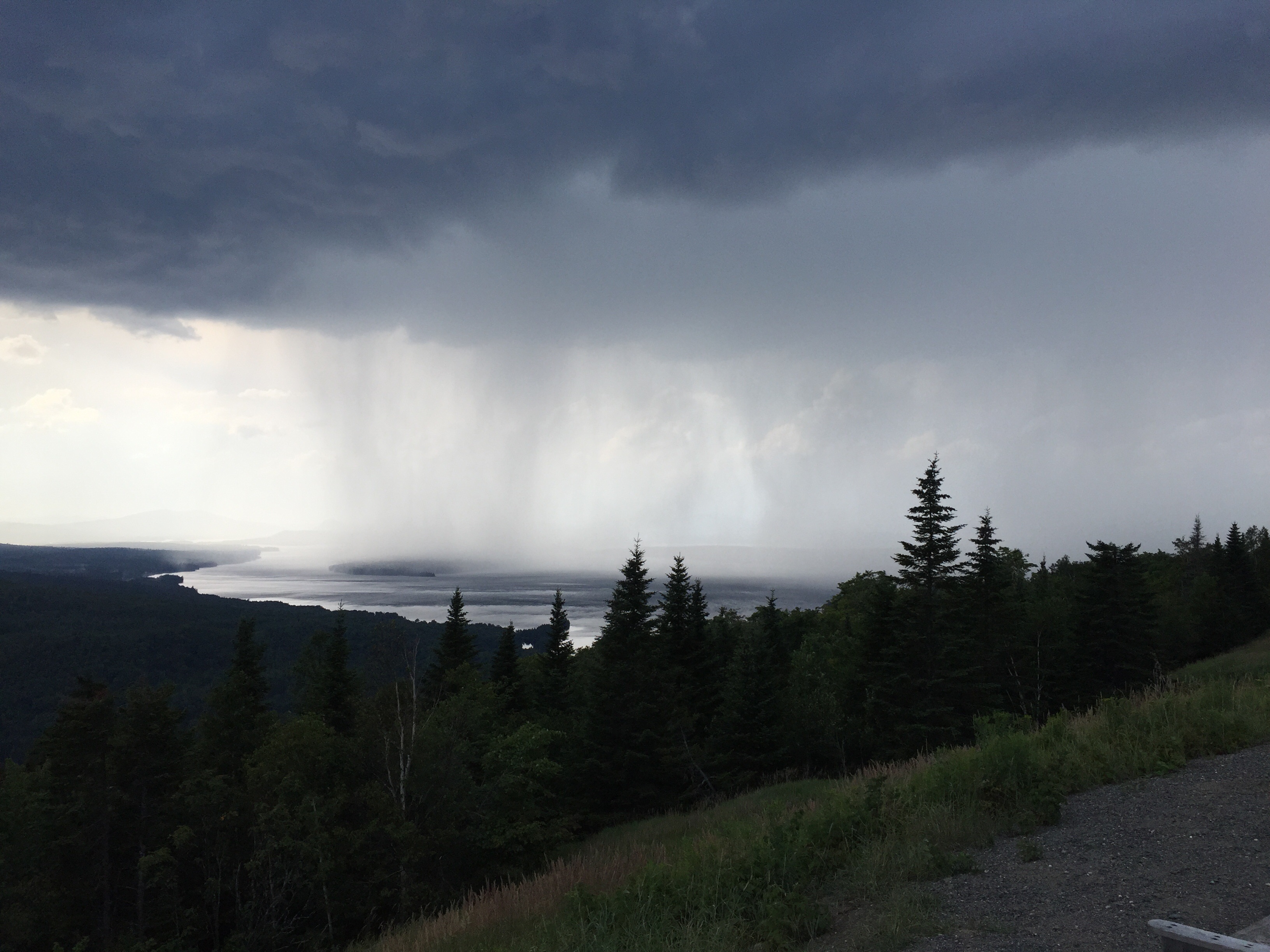 We started this morning with a long and steep climb up Old Blue Mtn. It was a nice climb. The rest of the day was up and down with lots of roots, rocks and slab walks. We ended the day with thunder and sprinkles and when we came out of the woods, there was a thunder, lightening and rainstorm over the lake. It was a beautiful and enjoyable day.