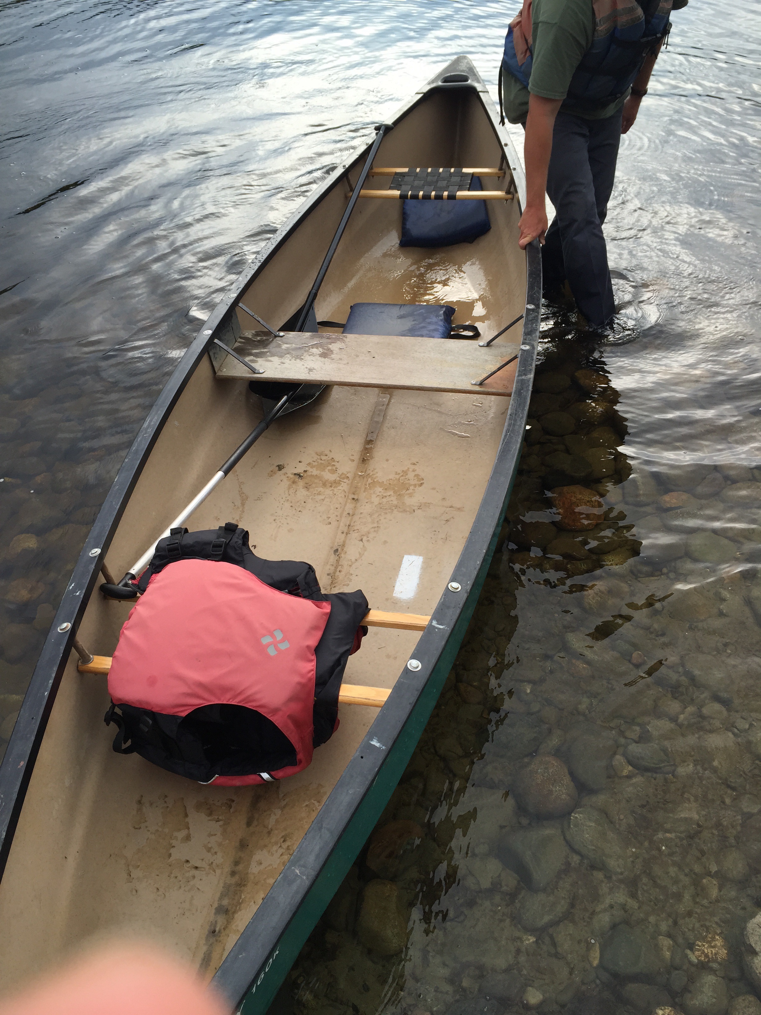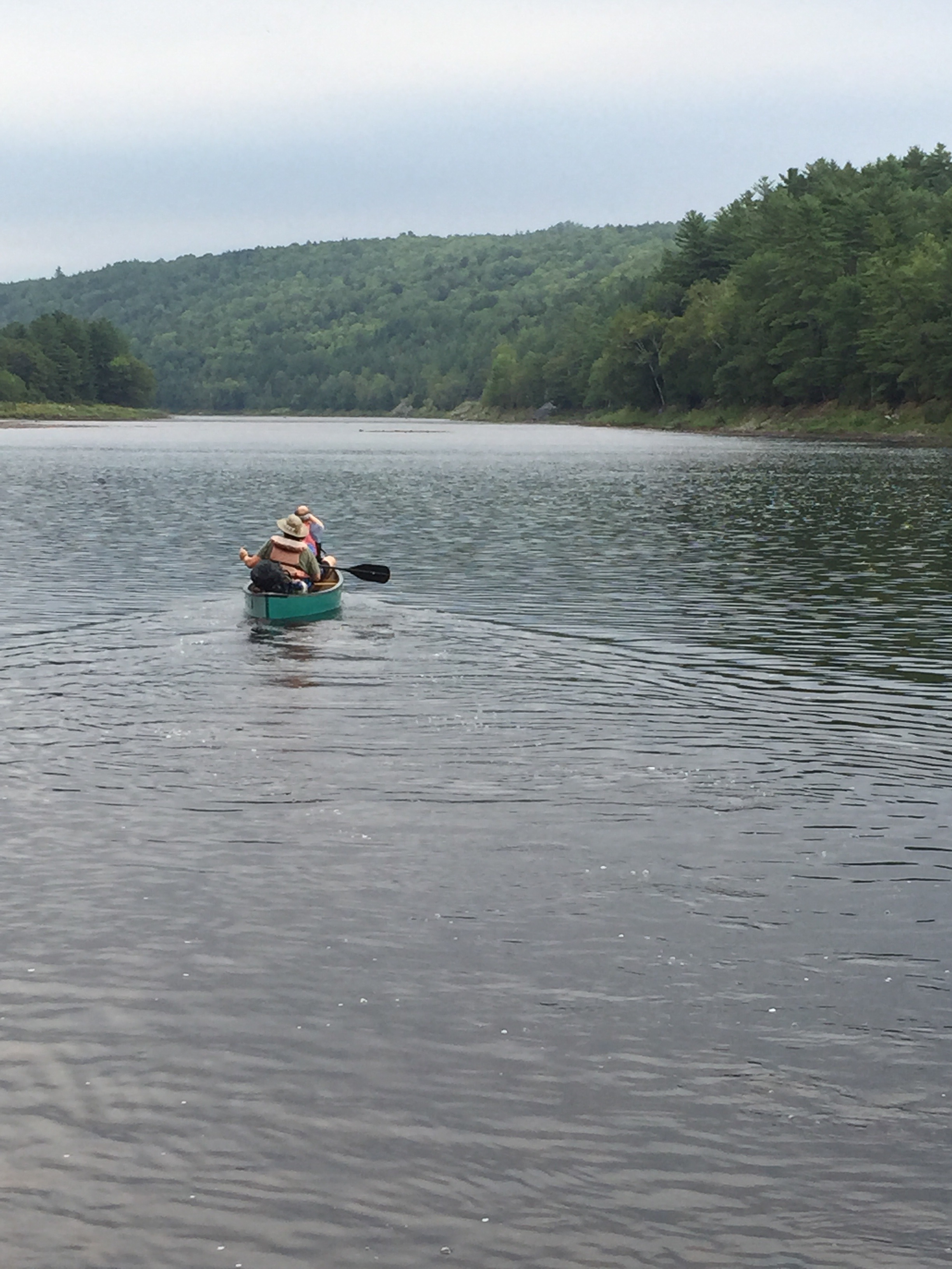 August 28-30. So, so happy to have Danny here. Picked him up from the airport Friday and we made the 2-1/2 hr. drive back to Stratton for the night. We got up early and he drove me 45 mins. to the trailhead and I hiked 16.7 miles in to Pierce Pond. Danny then drove back to Stratton for a shower and breakfast and after checking out of the hotel he drove to Caratunk to the AT trailhead there and hiked 3.7 miles in to Pierce Pond to meet me. He had to take the canoe ferry across the Kennebec River which we both had to do on Sunday. morning. The Kennebec used to be a river that hikers had to ford, but because too many people drowned there, they now have a hired canoe that shuttles hikers across. The canoe runs everyday from 9-11 am and 2-4 pm. Danny caught the 2 pm ferry on Saturday and hiked in southbound and met me at Harrison’s Fish Camp at Pierce Pond. The AT is 0.3 miles down a side trail from Harrison’s. We got a tiny little cabin there. It’s really rustic. There’s no electricity. We used oil lamps for light. In the morning on Sunday, Tim, the owner of Harrison’s, made breakfast. Everyone gets 12 pancakes each plus 3 sausage links and 2 eggs. I ate all but 1/2 of a pancake, 1/2 of my eggs, and Danny ate my sausage. The pancakes were full of raspberries and blueberries and were delicious. The camp’s power in the main lodge was provided by a generator. Tim lives there year round and uses a snowmobile to get around in winter. His camp is 3.7 miles from Caratunk, ME if you hike, but 40 miles by car because you have to go around the river.
